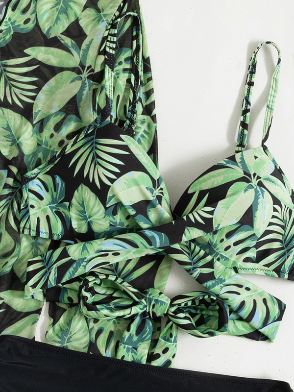 Women’s tropical print bikini three-piece set featuring a stylish fit and soft, comfortable fabric. Beach vacations, pool parties, it’s machine washable and hand washable. Fabric is wrinkle resistant and resistant to pilling. The size is measured by hand, and it is normal for there to be an error of 1-3cm.